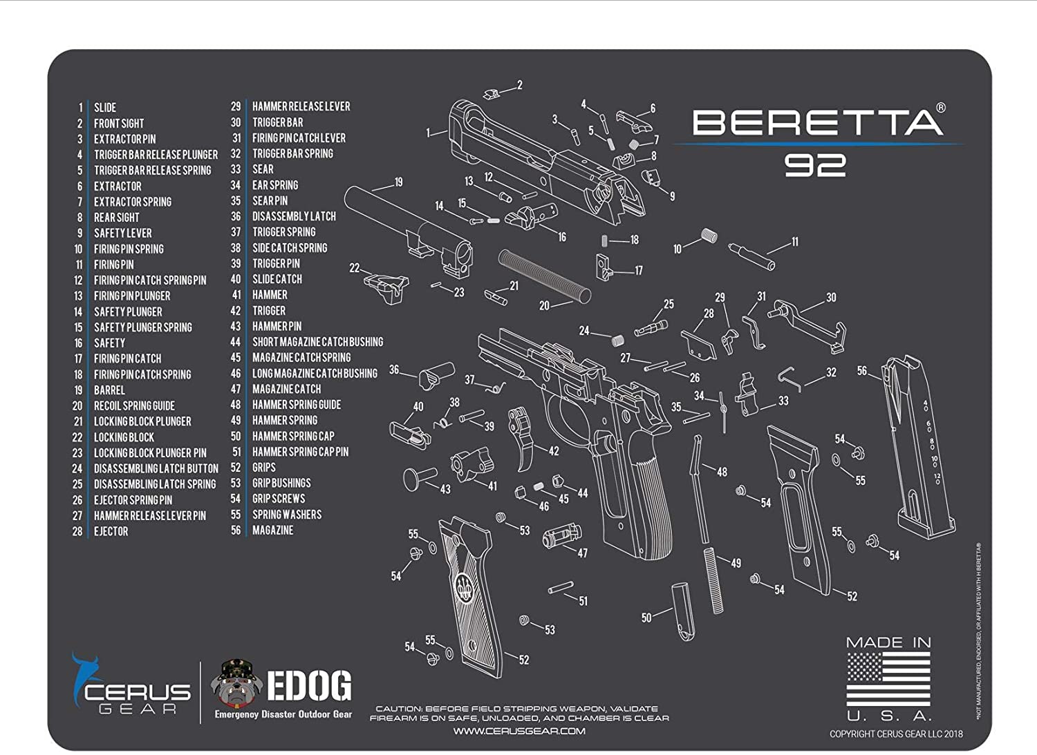 - ACCURATE MAT DESIGN: This Mat is Designed To Be Used & Compatible For Your Beretta 92 Hand Gun As Pictured, Your Firearm, Is An Investment That You Will Want To Protect & Add To Your Shooting Accessories Like Gun Cleaning Patches, Bore Cleaner, Bore Brushes, Clp, EDOG Range Bag And Eye And Ear Protection, This Mat Is Designed To Protect Your Weapon & Work Surfaces