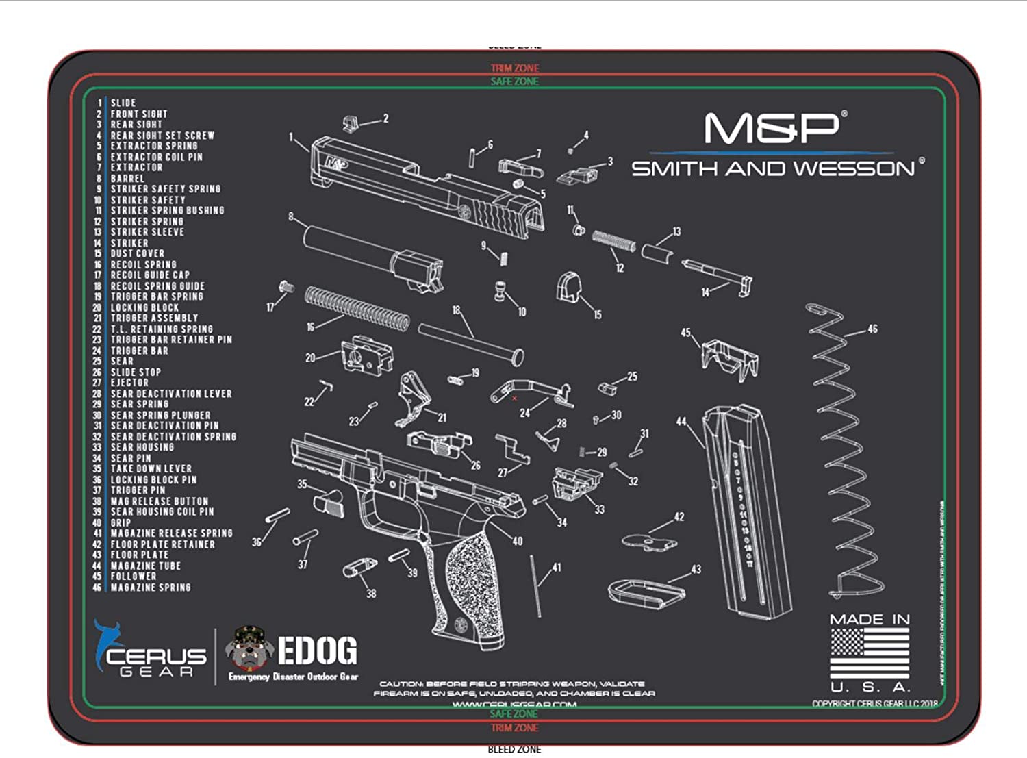 • ACCURATE MAT DESIGN: This Mat is Designed To Be Used & Compatible For Your Smith & Wesson M&P Hand Gun As Pictured, Your Firearm, Is An Investment That You Will Want To Protect & Add To Your Shooting Accessories Like Gun Cleaning Patches, Bore Cleaner, Bore Brushes, Clp, EDOG Range Bag And Eye And Ear Protection, This Mat Is Designed To Protect Your Weapon & Work Surfaces