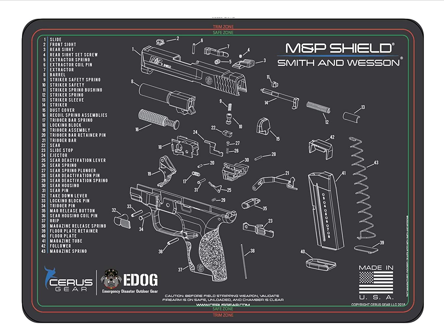 • ACCURATE MAT DESIGN: This Mat is Designed To Be Used & Compatible For Your Smith & Wesson M&P Shield Hand Gun As Pictured, Your Firearm, Is An Investment That You Will Want To Protect & Add To Your Shooting Accessories Like Gun Cleaning Patches, Bore Cleaner, Bore Brushes, Clp, EDOG Range Bag And Eye And Ear Protection, This Mat Is Designed To Protect Your Weapon & Work Surfaces