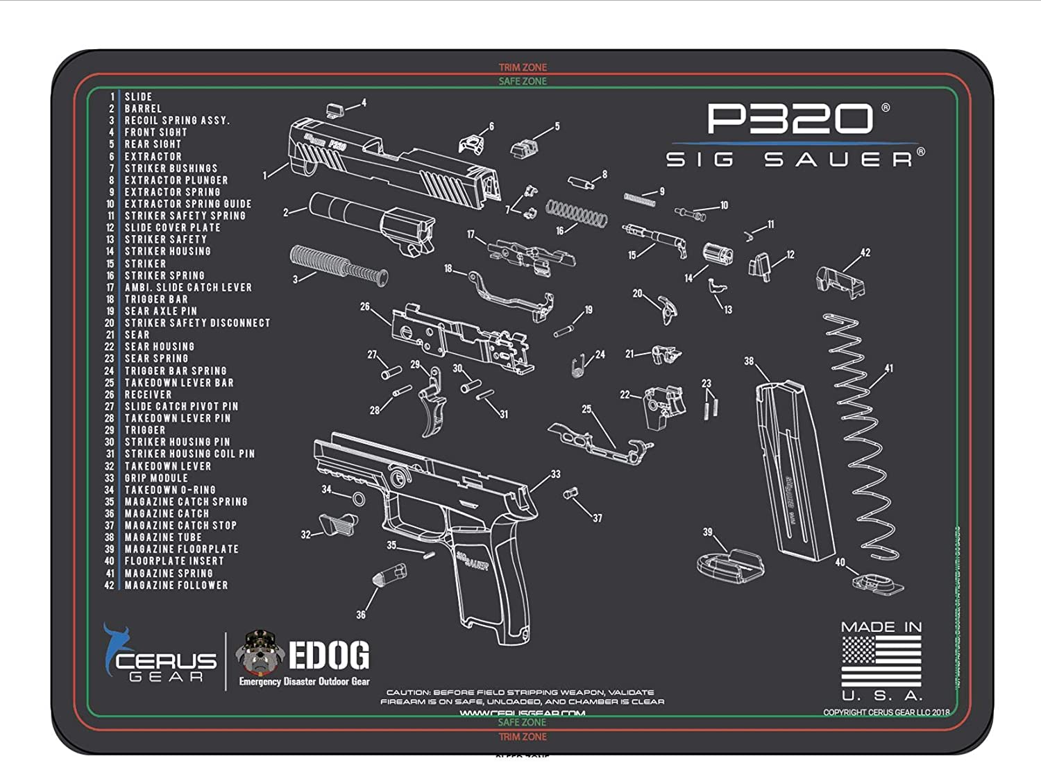 - ACCURATE MAT DESIGN: This Mat is Designed To Be Used & Compatible For Your Sig Sauer P320 Hand Gun As Pictured, Your Firearm, Is An Investment That You Will Want To Protect & Add To Your Shooting Accessories Like Gun Cleaning Patches, Bore Cleaner, Bore Brushes, Clp, EDOG Range Bag And Eye And Ear Protection, This Mat Is Designed To Protect Your Weapon & Work Surfaces