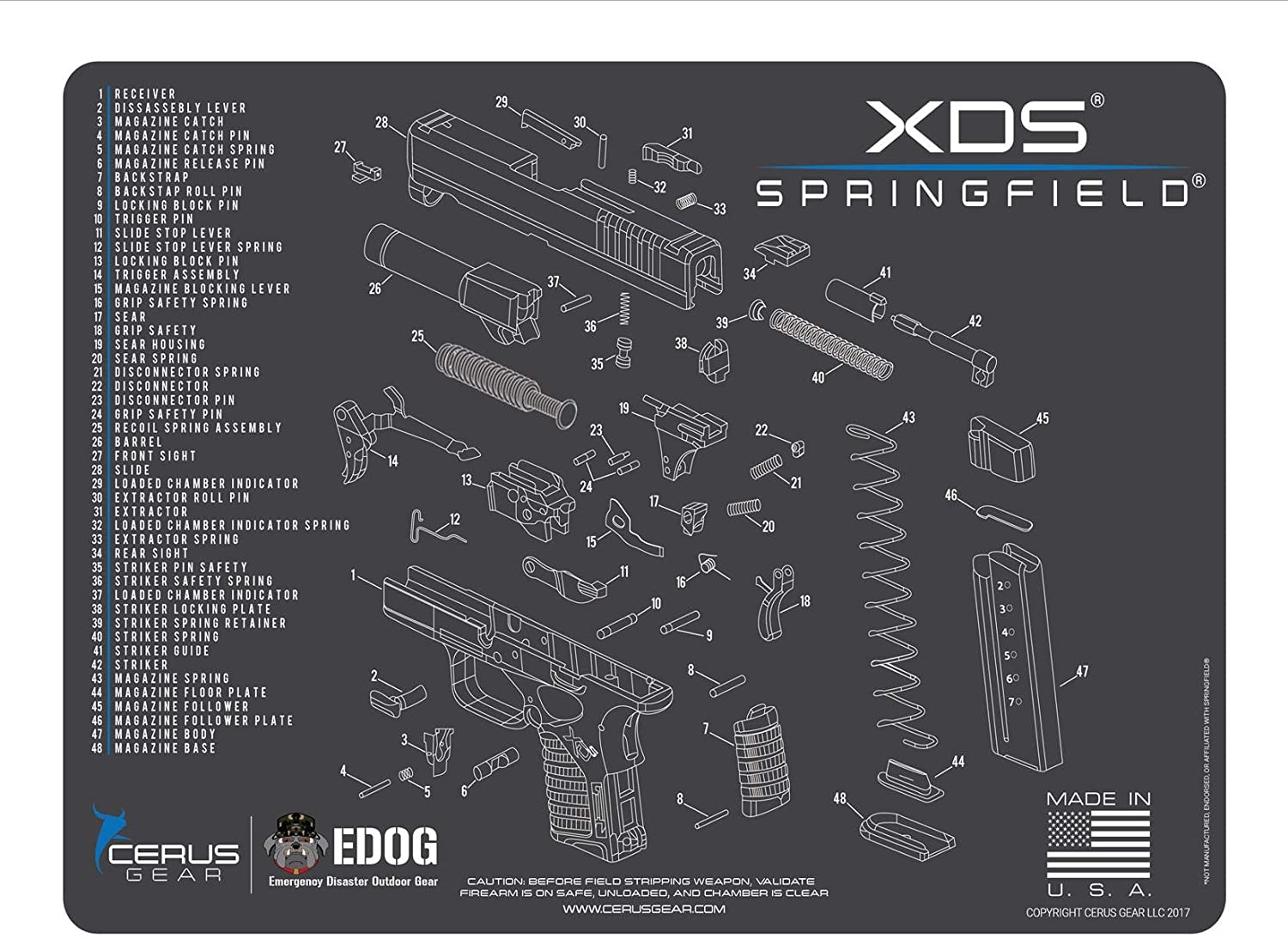 - ACCURATE MAT DESIGN: This Mat is Designed To Be Used & Compatible For Your Springfield Armory XDs Hand Gun As Pictured, Your Firearm, Is An Investment That You Will Want To Protect & Add To Your Shooting Accessories Like Gun Cleaning Patches, Bore Cleaner, Bore Brushes, Clp, EDOG Range Bag And Eye And Ear Protection, This Mat Is Designed To Protect Your Weapon & Work Surfaces