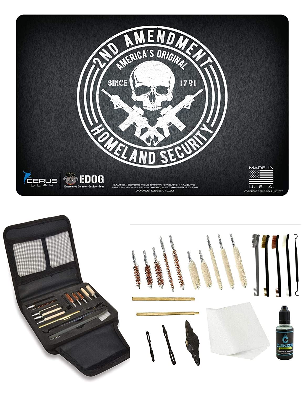 - · E.D.O.G. EXCLUSIVE UNIVERSAL 4 PC GUN CLEANING ESSENTIALS BRUSH SET WITH CLENZOIL: CONTAINS | 1 DOUBLE-ENDED STAINLES STEEL BRUSH | 1 DOUBLE-ENDED BRASS BRUSH | 1 DOUBLE-ENDED COPPER BRUSH | 1 .25 OZ BOTTLE OF WORLD FAMOUS CLENZOIL ONE STEP ONE PRODUCT CLP, LOCK STOCK & BARREL