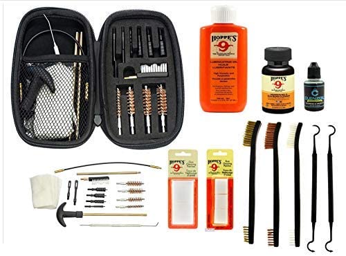 E.D.O.G. GUNSLINGER 20 PC UNIVERSAL CLEANING KIT ? FOR CALIBERS 22 357 38 9MM 45 | 4 Copper Brushes| .45, .40. ,357, .22| 4 Cleaning Jags| .45, .40, .35, .22| .22 Patch Holder| .30 Patch Holder| 1Pc Pick & Scraper| 2 Cleaning Rods| 50 Patches| 1 Pc Form Fit Case| 1Pc Handle| 1Pc Flexible Dleaning Rod| 1Pc Nylon Brush| Zippered Case