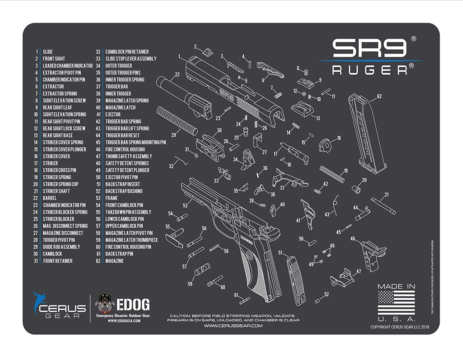 - · BE THE ENVY OF YOUR BUDDIES WITH THE NEW E.D.O.G. PISTOL CLEANING MATS *EXPLODED VIEW) PROMAT (MODEL AS SPECIFIED IN LISTING TITLE) YOUR WEAPON. NO MORE SPRING FLYING ACROSS THE ROOM- JUST CONFIDENT, SIMPLE, STEPS TO HELP YOU GET THE JOB DONE, INSTRUCTIONAL STEP BY STEP TAKE DOWN OR SHOW YOUR PRIDE WITH OUR LIFESTYLE MATS