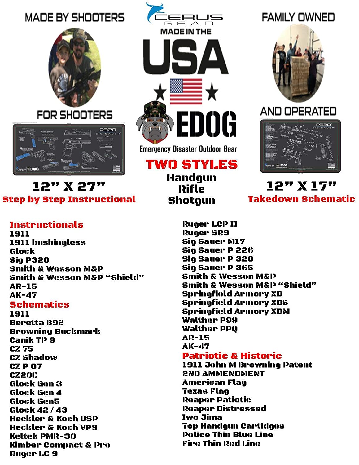 - BE THE ENVY AT THE RANGE AND PAIR YOUR WEAPON WITH THE EXPLODED VIEW SCHEMATIC PROMAT , HAVE CONFIDENCE IN CLEANING YOUR PISTOL, LEARNING YOUR WEAPON’S DESIGN WILL BE A BREEZE. PROUDLY MADE & DESIGNED BY & FOR SHOOTERS IN THE USA