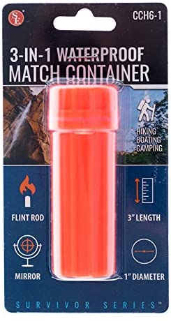 - 3-in-1 functions: storage container, signaling mirror and firestarter flint on bottom of container